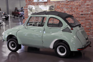 1955年に通商産業省(現在の経済産業省)の提唱した「国民車構想」を受けたモデルといわれることもあるスバル360。