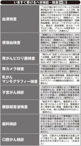 定期的に受診することで病気を早期に発見できる検査や検診。