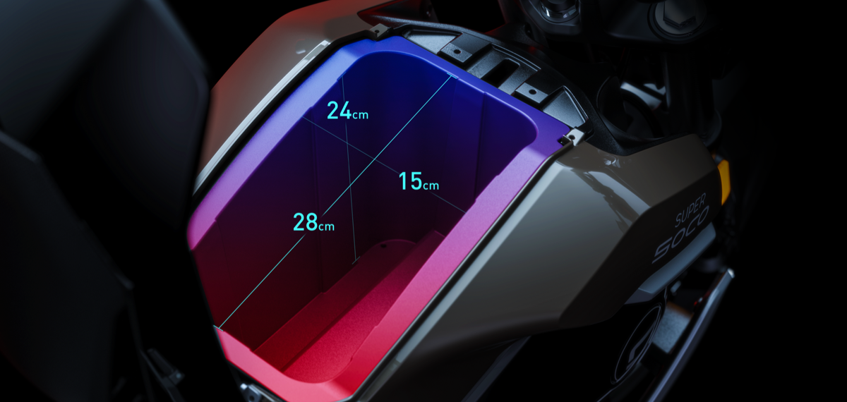 シート手前には、大容量のストレージも。ニューノーマル時代の通勤といえば「TS STREET HUNTER」なんて日はそう遠くないかも。