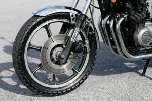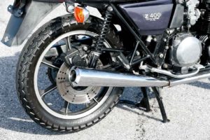 Z500のフロントブレーキはダブルディスクだったのが、Z400FXではシングルディスクに変更されています。