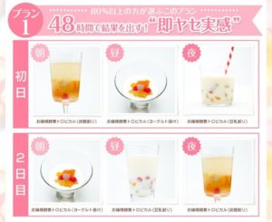 「お嬢様酵素」でしたら2日間、3食全て抜いて、60mlの「お嬢様酵素」を1日に5,6回飲むようにするのです。