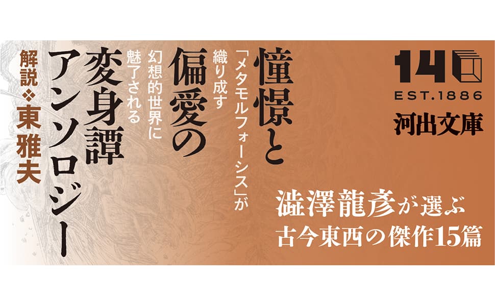「メタモルフォーゼへの耽溺を自認する澁澤龍彦が編んだ、古今東西の変身譚からよりすぐったアンソロジー。冒頭編者自身の変身への長きに渡る憧れを表したエセーと、終章花田清輝の変身譚論とに挟まれて、数々の物語が妖しく身じろぎしているかのような短編集。世に変身話しは数々ある。私なら何を選び取ろうか。」