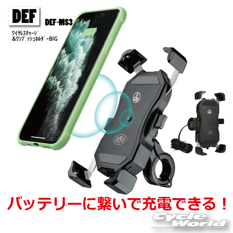 ☆【RIDEZ】「DEF-MS3」 DEF ワイヤレスチャージ&ワンプッシュホルダーBIG ライズ 携帯ホルダー スマホホルダー iPhone 充電式ホルダー【バイク用品】 価格:4,070円 |