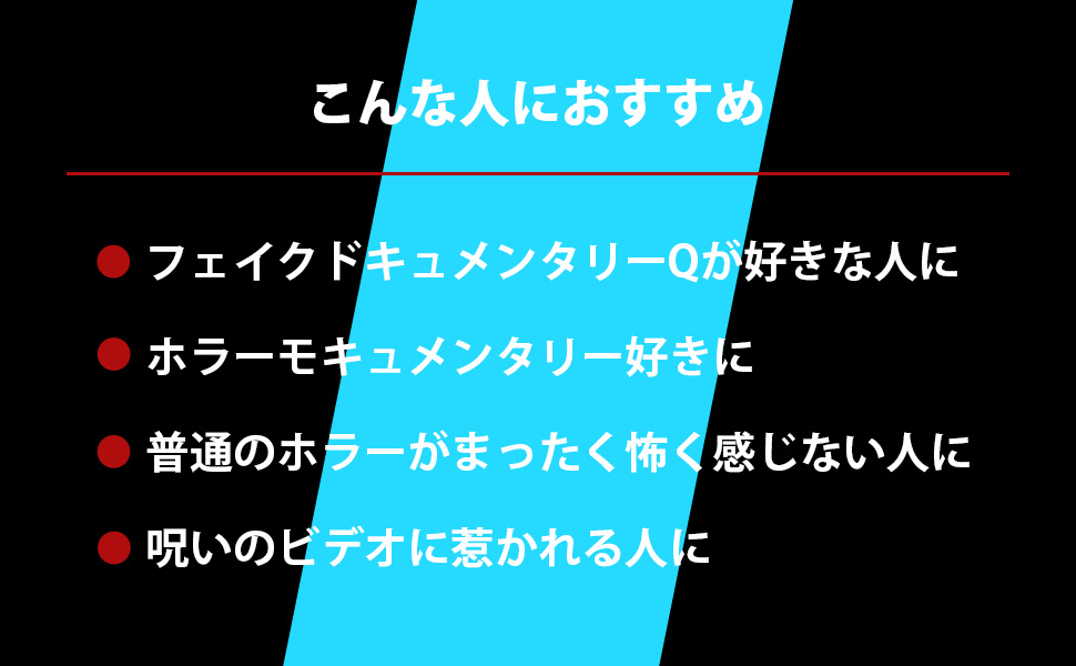 他にも、防犯カメラに映る、エレベーターで失踪した女性の映像、ドライブ中に、カルト教団に拉致される映像などが人気である。