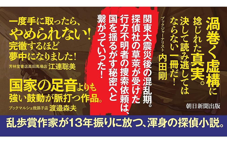 関東大震災の混乱の中、数少ない手掛かりを頼りに調査を進めるが、関係者は次々と不審な死を遂げていき……。