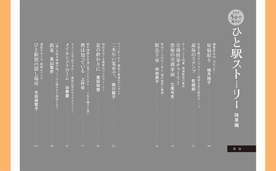 累計150万部を突破した宝島社の「ショートショート」シリーズの原点「5分で読める! ひと駅ストーリー」の降車編の新装版です。