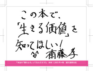 45人のお客様がこれが役に立ったと考えています」「中学一年生の息子に読ませようと購入。自ら読んでみたところ、非常に読みやすく、内容的な質の高さに感動しました。勉強をするという事の意味、そして日頃自ら口を酸っぱくして子供に伝えている本を読む事の大切さを、論理的に分かり易く解説しています。さすが斎藤先生というありがたい一冊です。」