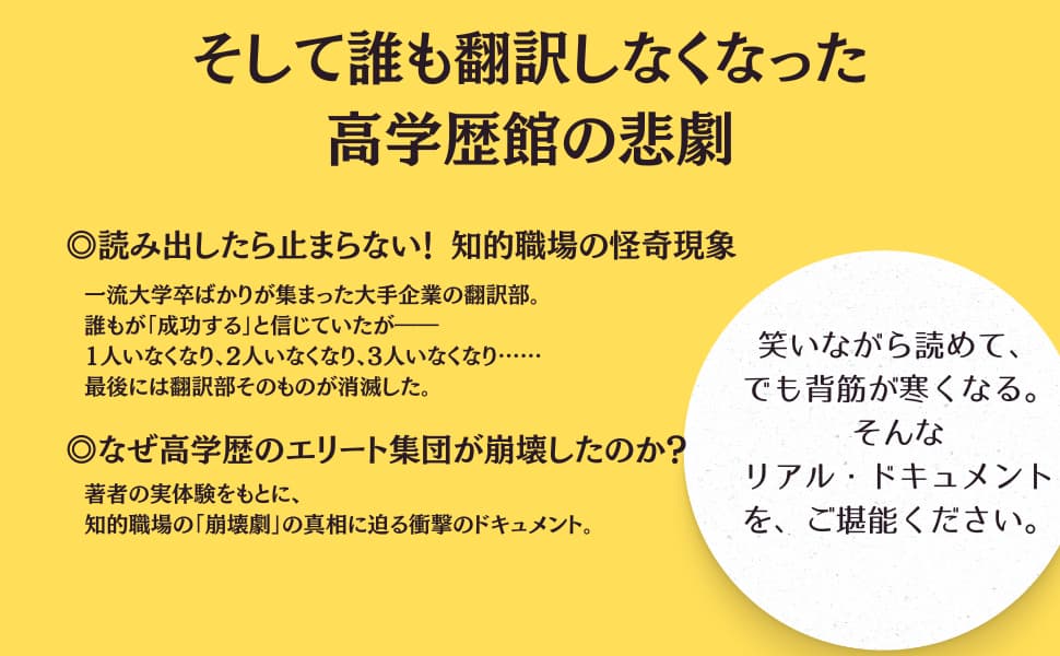 一流大学を出たエリートばかりが集まった翻訳部。誰もが「ここにいれば安泰」と思っていた。