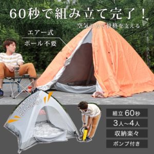 サンコーが1人でも設営できるエアー注入式テント「簡単設置エアーピラミッドテント」を発売しました。