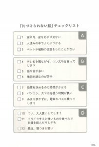 片付けの極意が書いてあるわけではなく、それ以前の片付けができる脳になるトレーニングが紹介されています。