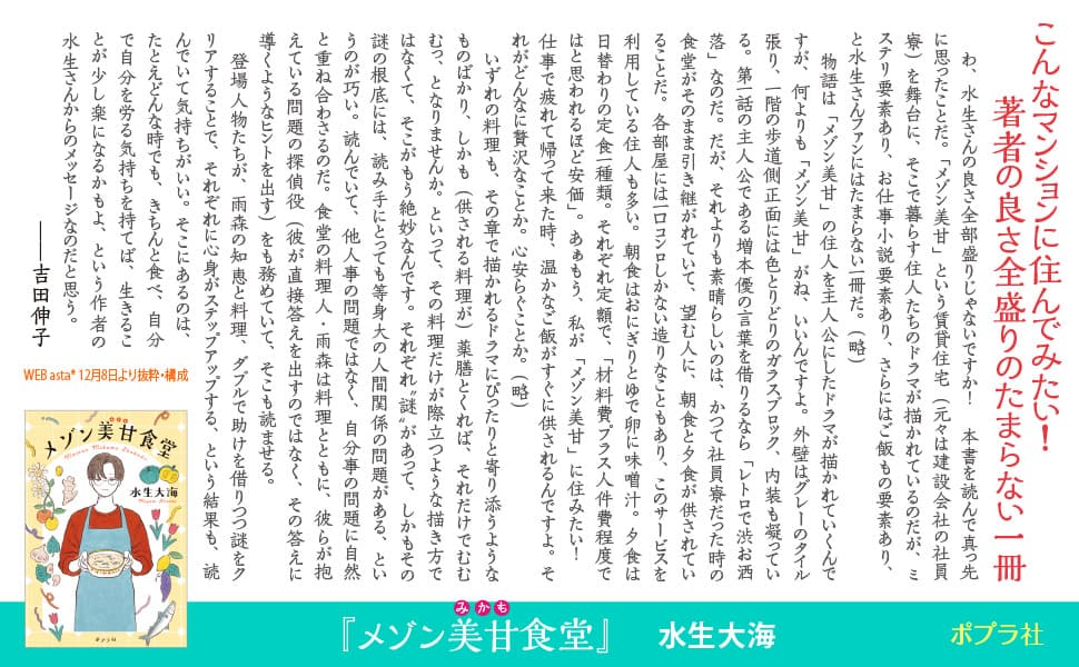 食や健康に関心の薄かった住人たちだが、涼真の料理を通して、自らを見つめなおし、よりよく生きるための一歩を踏み出していく――。