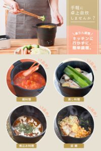 卓上で1人向けの鍋料理や煮込み料理を手軽に調理できます。