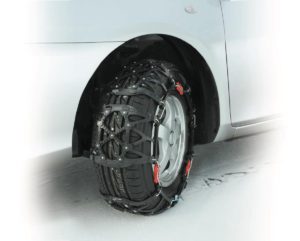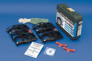 金属タイヤチェーンの約5倍の耐久性を実現。3箇所クイックロック機構を採用し、スピーディに装着できる。