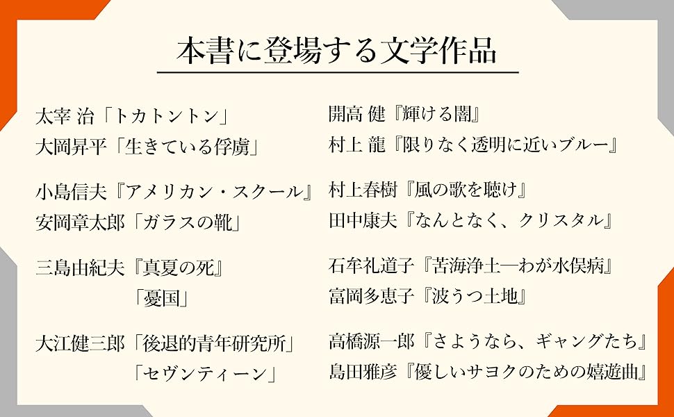太宰治、三島由紀夫、大江健三郎、村上春樹、村上龍、高橋源一郎、島田雅彦……。