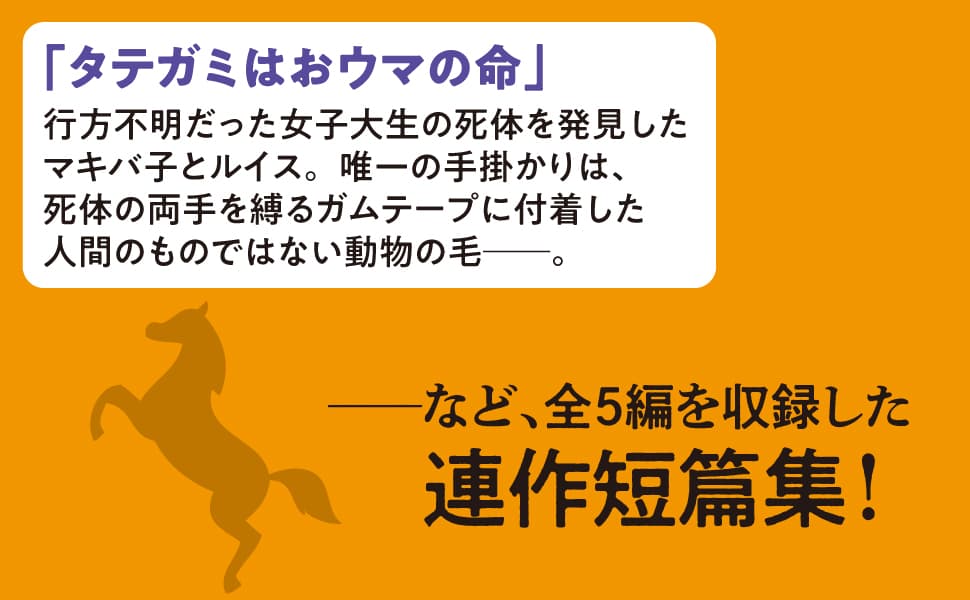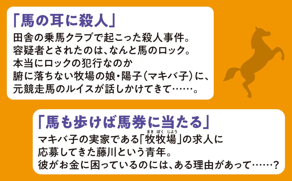 小さな田舎町で起こる不可解な事件の数々に、元競走馬と女子高生のコンビが挑む連作ミステリ。