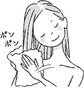 人間の体温だけでも髪はかなり乾きますから、タオルを軽くポンポンと当てる「タオルドライ」で十分です。