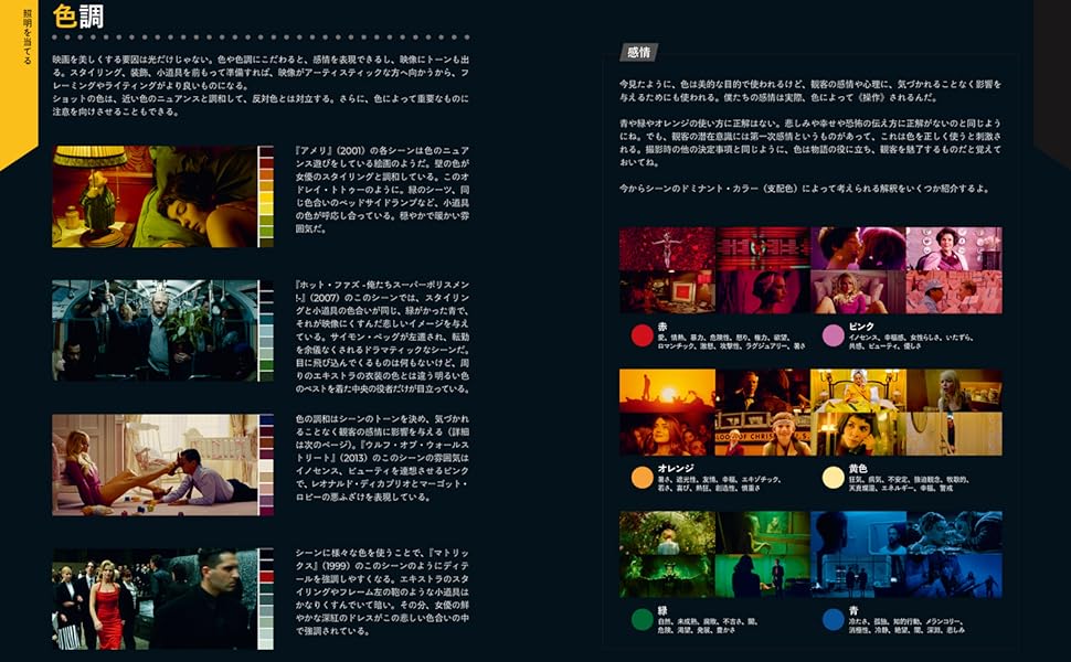 図解イラストや著名な映画作品のカットを見ながら、映像制作を基礎からその発展形まで学ぶことができます。