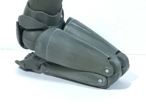 「固い材質で作るフィギュアだと、足を深く曲げても太もも裏の部分が邪魔になって、人間のようなポージングが出来ないんです。そこでハッチを設け、深く曲げたときにふくらはぎの一部がそこに入り込む仕組みを考えました」