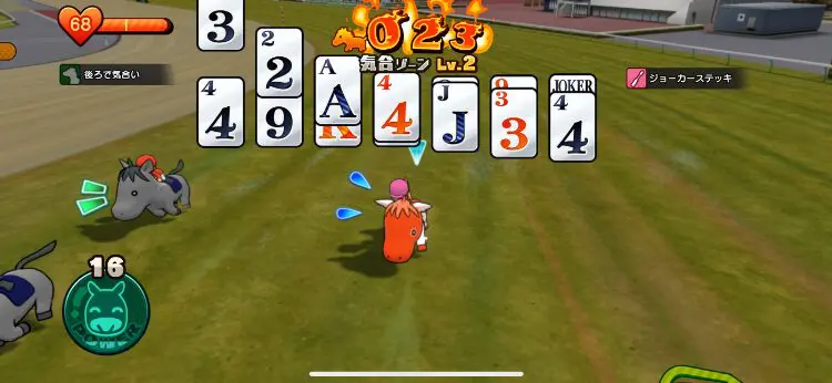 カードを取ろうとしてぶつかって弾かれることもあるので、馬の強さも大切です。