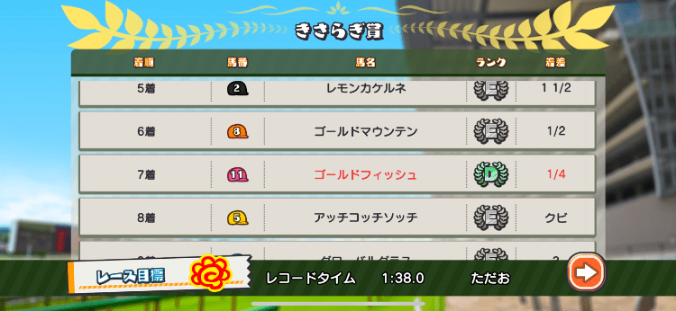 ということで着順は7着でした。